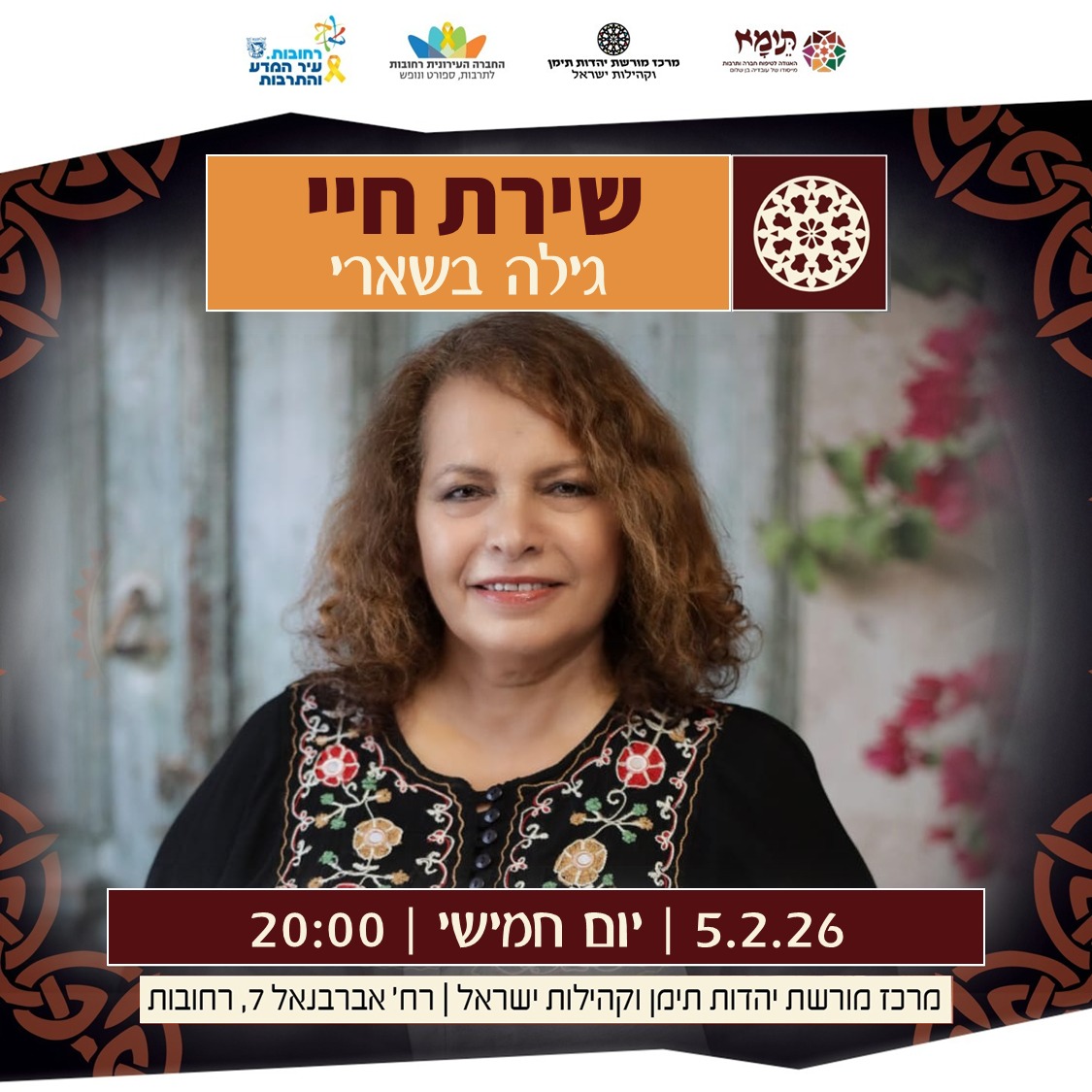 חמישי | 5.2.26 | 20:00 | מרכז מורשת יהדות תימן וקהילות ישראל - רחוב אברבנאל 7, רחובות